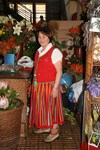 De traditionele klederdracht van de bloemenverkoopster op het eiland Madeira.